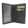 A PU leather passport cover, white sublimation front, black PU leather back and space to add your passport and bank cards.